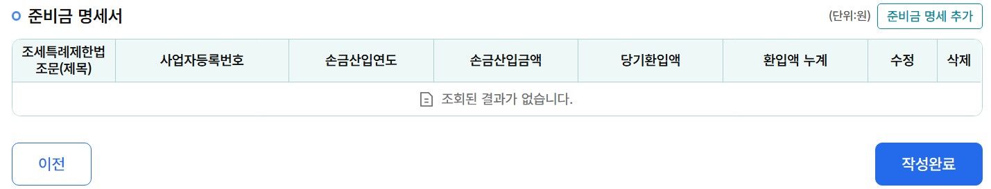 23. 준비금 명세서 내용 확인 후 '작성완료'를 클릭합니다.